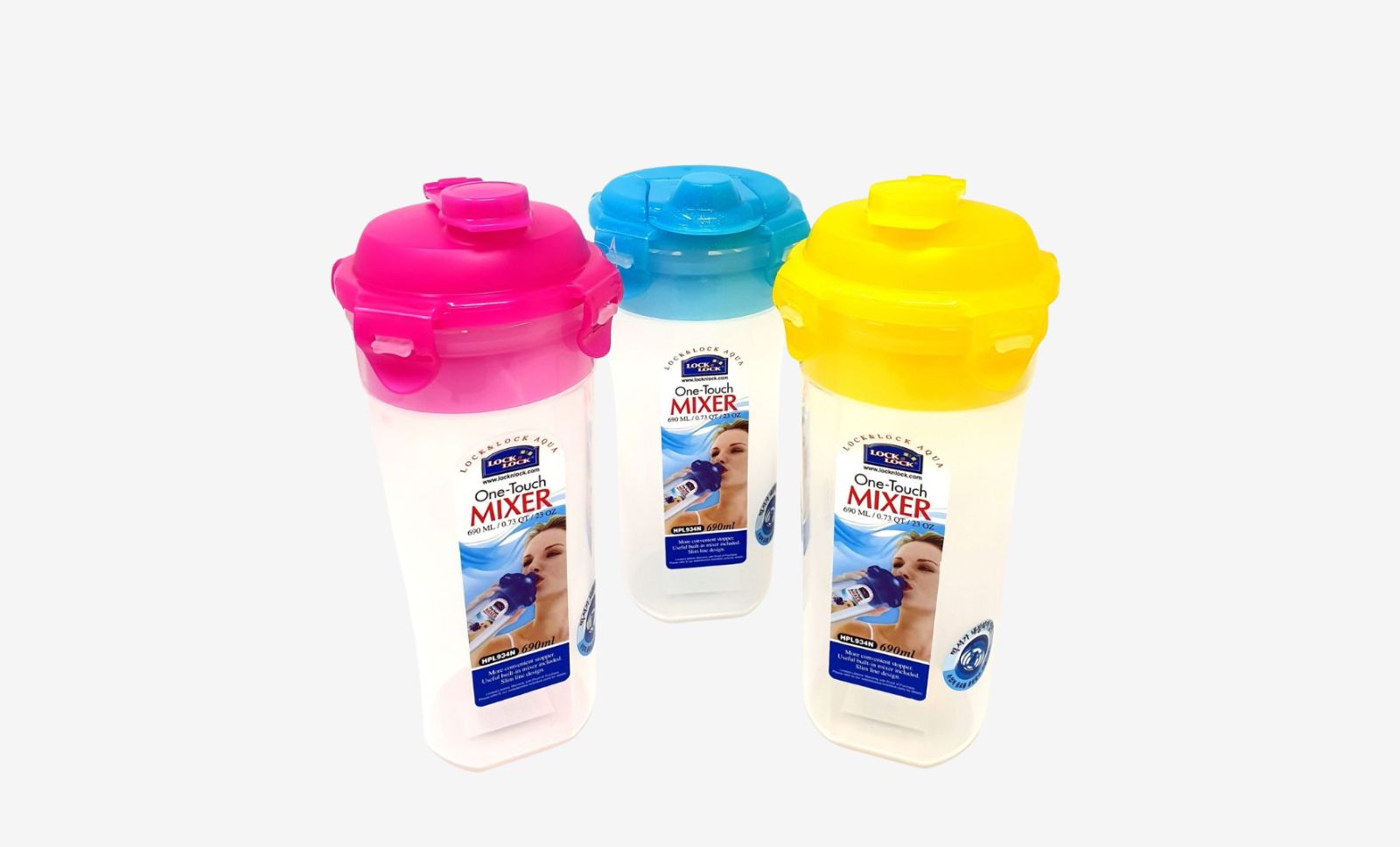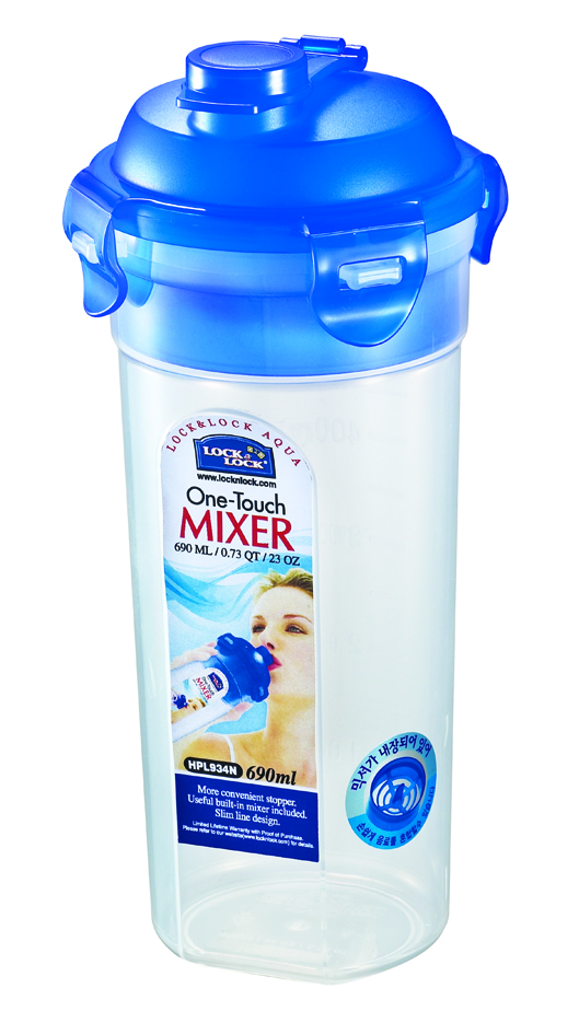 בקבוק עם מיקסר לשייק עם פיה 690 מ"ל Lock&Lock מיועד להכנת שייקים. קוטר: 10.1 ס"מ. גובה: 20.7 ס"מ דגם 934N