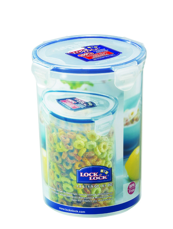 קופסת אחסון Lock&Lock עגולה הרמטית 1.8 ל' קוטר: 14.2 ס"מ גובה: 18.6 ס"מ דגם 933D