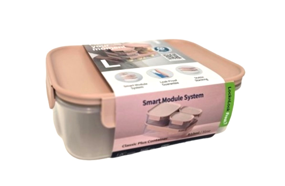 קופסת אחסון 910 מ"ל מכסה בצבע ורוד פסטל מסדרת קלאסיק פלוס של Lock&Lock
