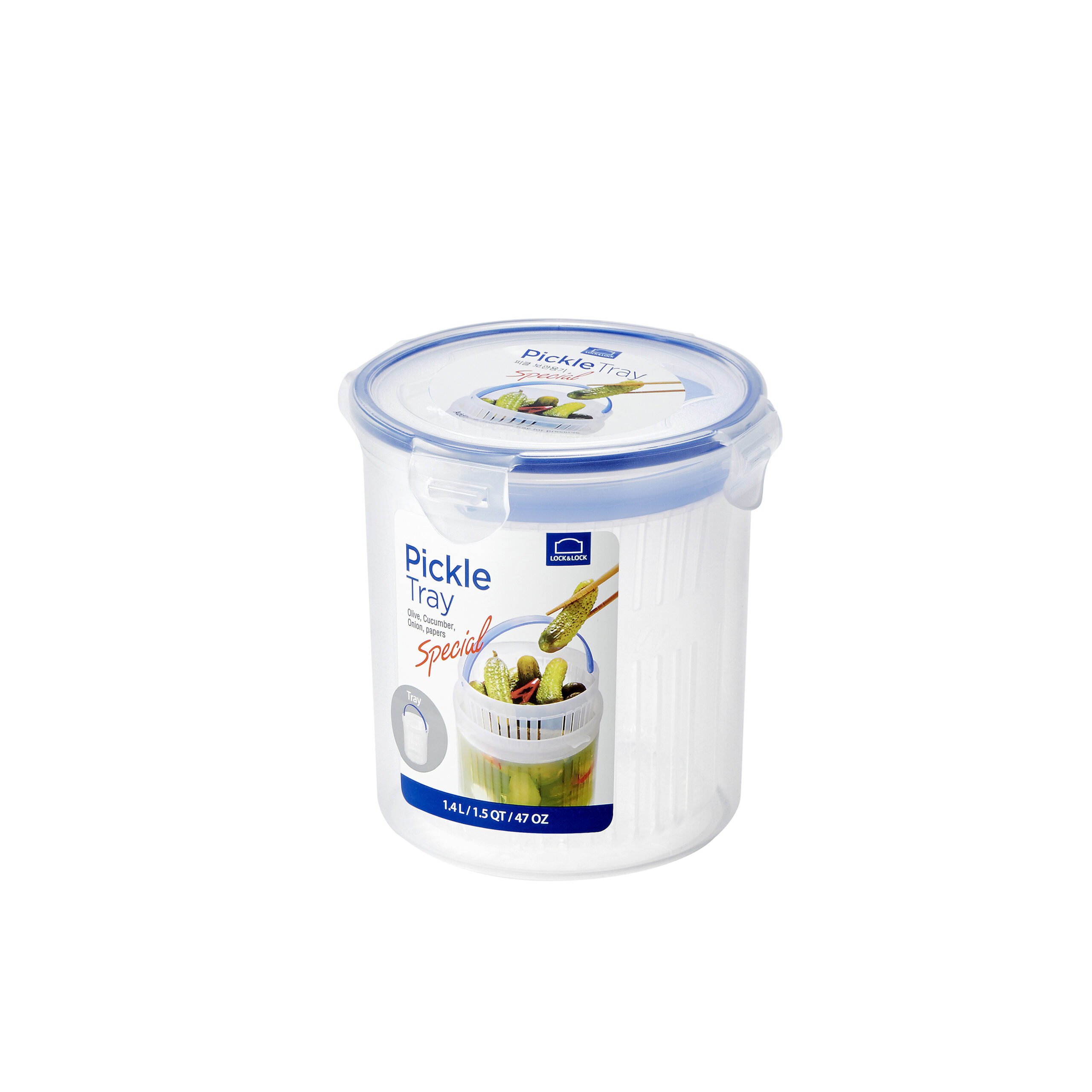 קופסת אחסון Lock&Lock עגולה 1.4 ל' עם רשת נשלפת וידית. הקופסא מתאימה לאחסון חמוצים/זיתים/גבינות. קוטר: 11.9 ס"מ גובה: 13.2 ס"מ דגם HPL933BT