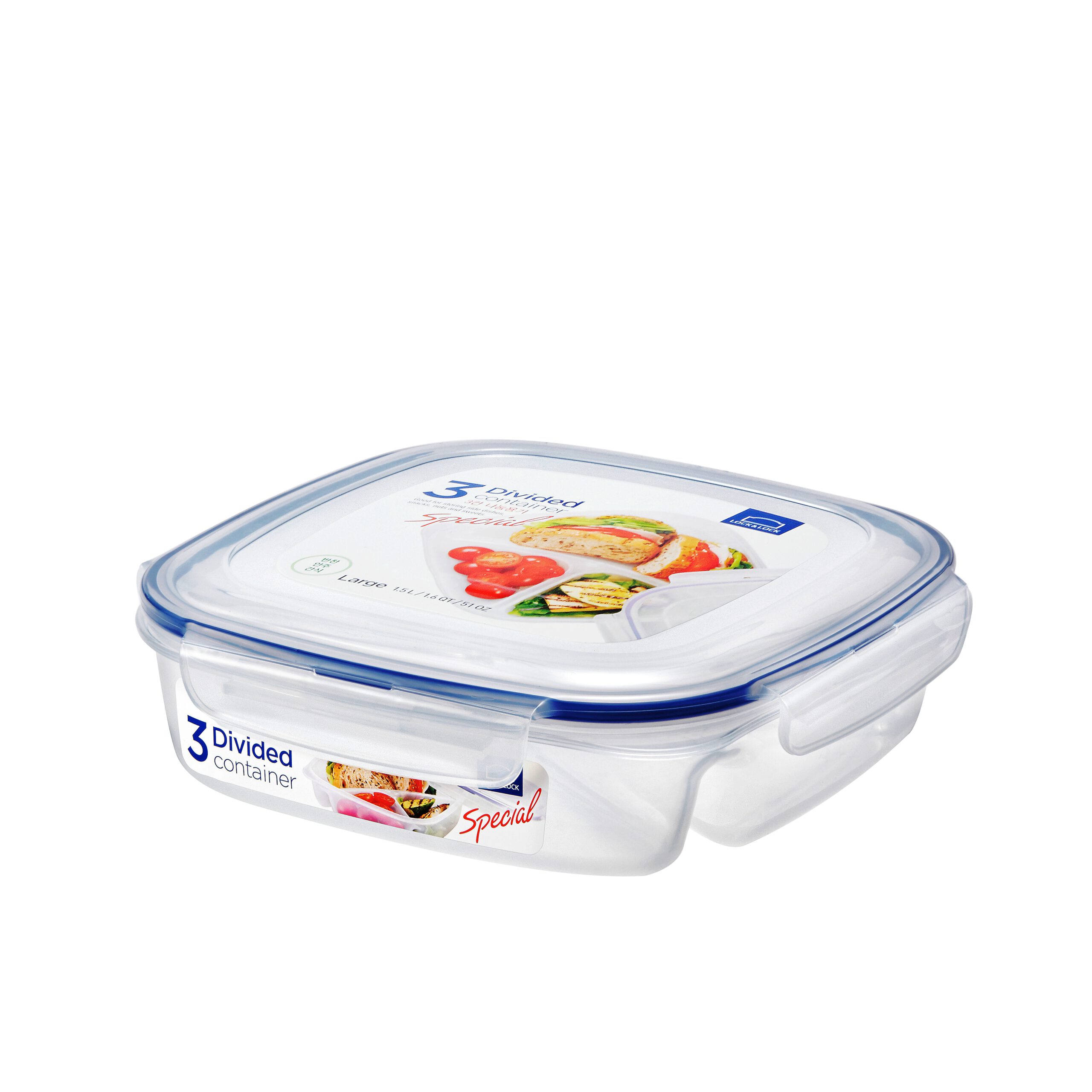 קופסת Lock&Lock מרובעת 750 מ"ל מחולקת ל-3 תאים מידות: 6.4×17.8×17.8 ס"מ דגם HPL971