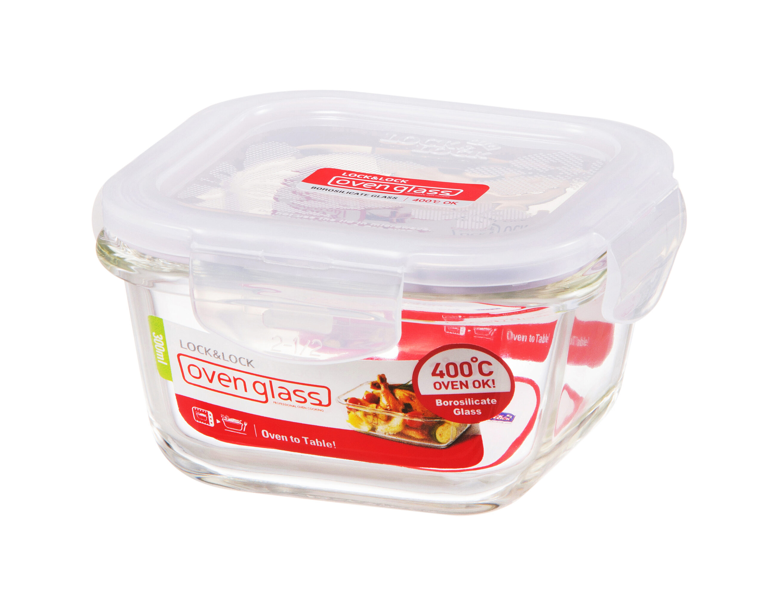 תבנית זכוכית מרובעת Lock&Lock אובן גלאס 300 מ"ל. מידות: 12x12x6.5 ס"מ דגם LLG 205