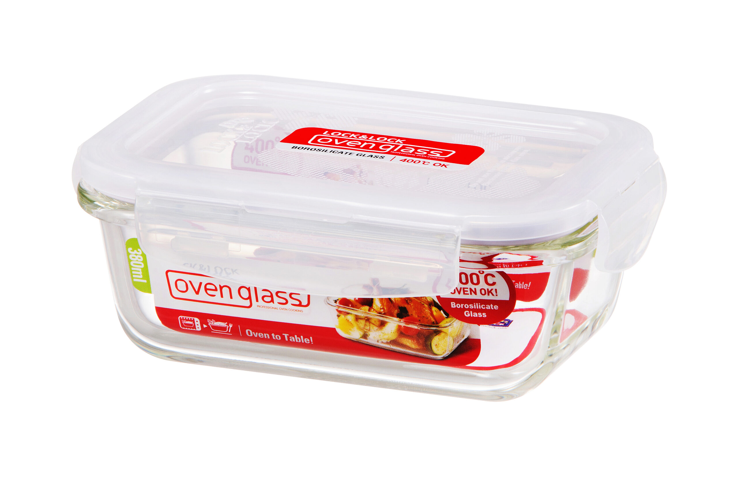 תבנית זכוכית מלבנית Lock&Lock אובן גלאס 380 מ"ל. מידות: 15x11x5.7 ס"מ. דגם LLG422