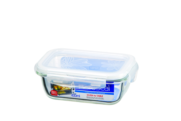 תבנית זכוכית מלבנית Lock&Lock אובן גלאס 430 מ"ל. מידות: 6×11.7×16 ס"מ. דגם LLG424