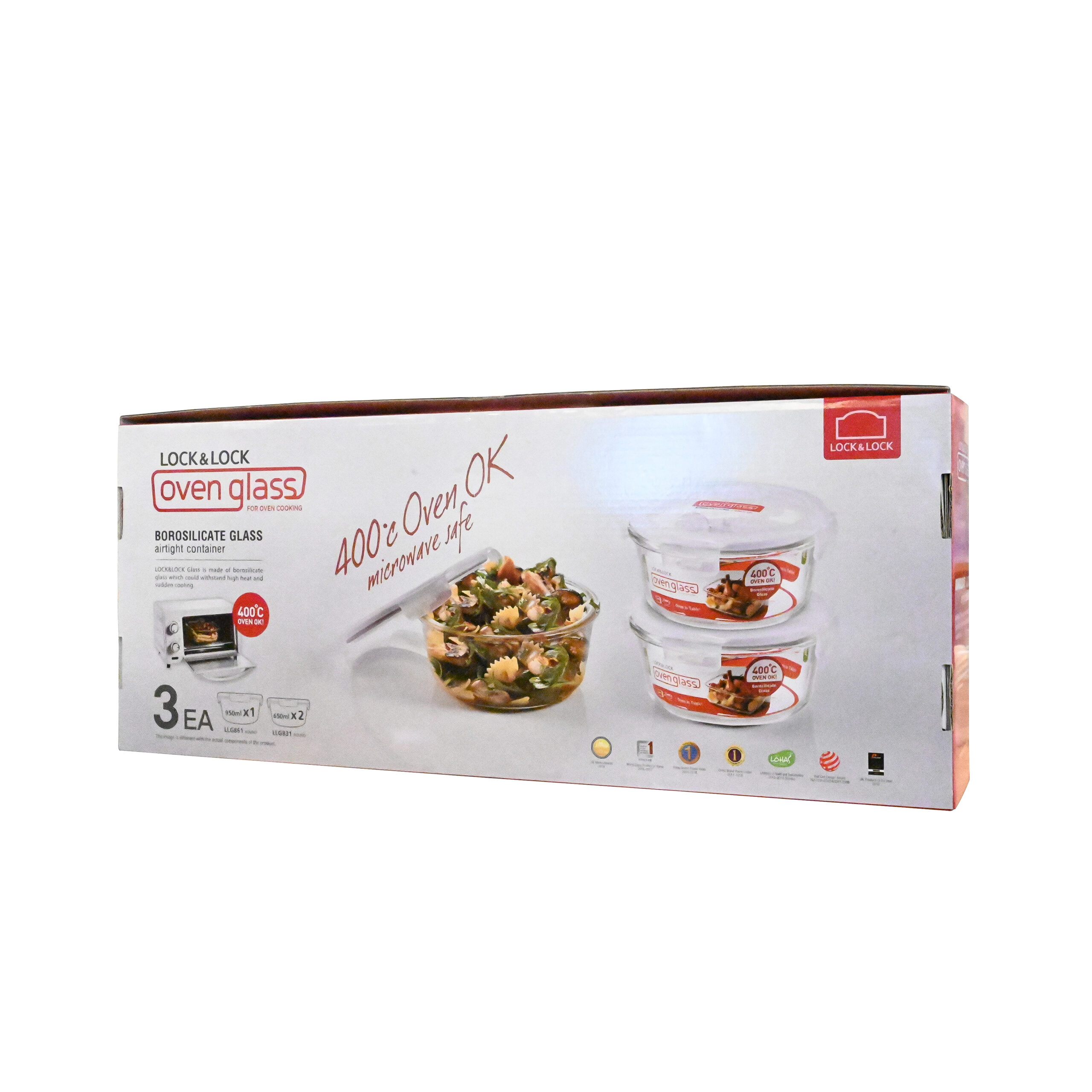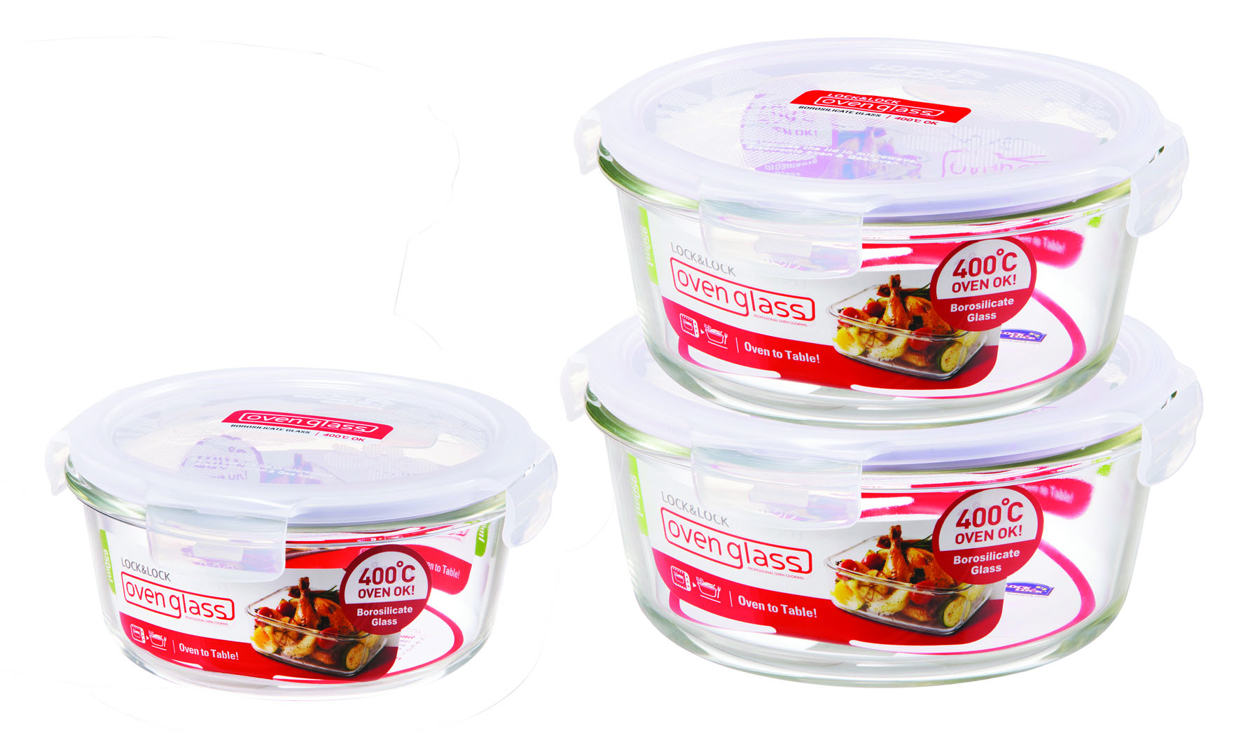 סט 3 תבניות זכוכית אובן גלאס עגולות Lock&Lock. דגם LLG861S3