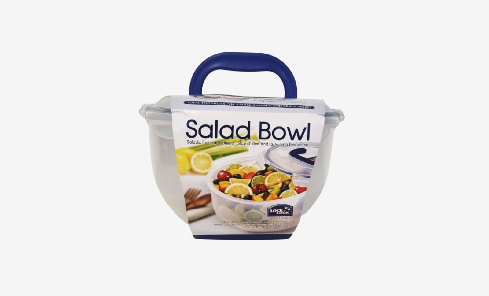 קופסת פלסטיק עגולה לסלט עם ידית אחיזה ומסננת פנימית – 4 ליטר – Lock&Lock